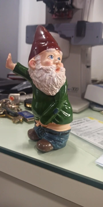 DISCOVER THE GARDEN GNOME WHO PEEES. THIS GNOME HAS LOOKING ASTONISHED LEANING OVER A TREE AND URINATING WILL NOT FINISH MAKE YOUR LOVED ONES OR NEIGHBORS LAUGH.